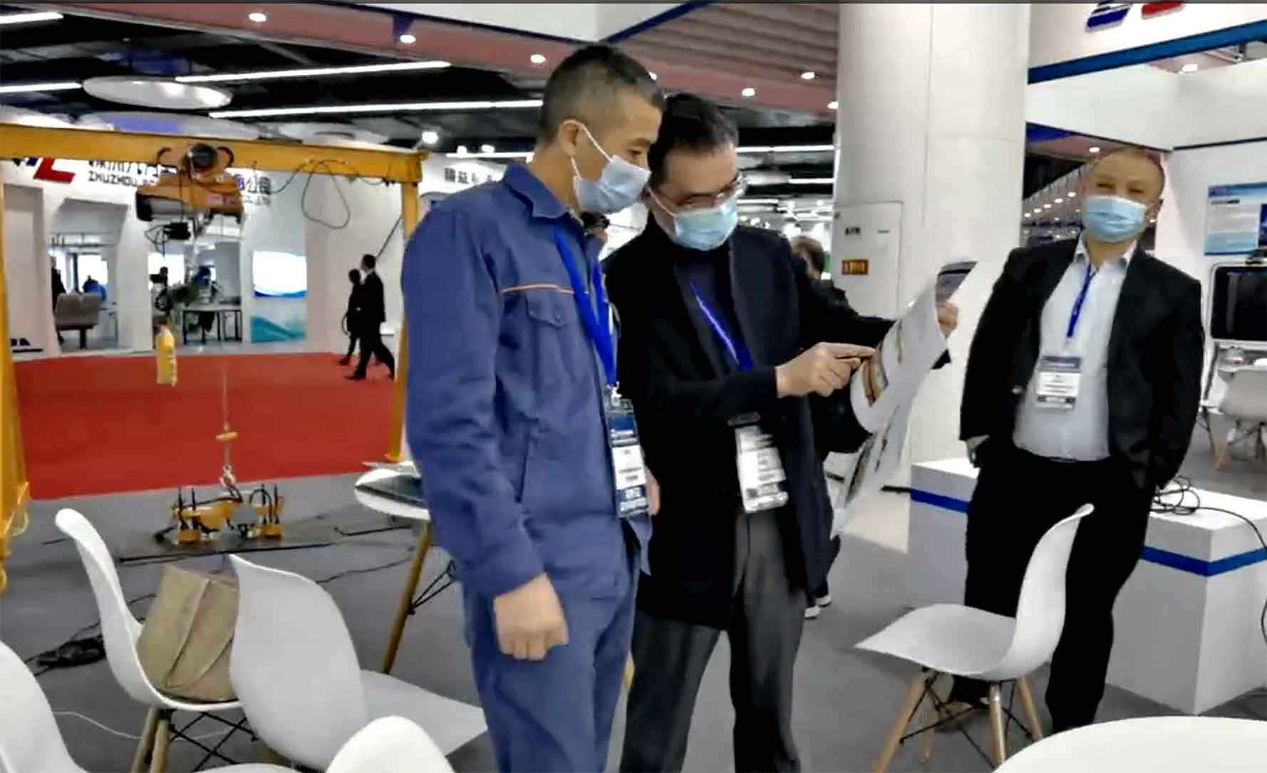 悍威磁電技術(shù)工程師以電永磁吊具為例,結(jié)合電永磁吊具模型為來往的與會人員詳細(xì)講解有關(guān)技術(shù)問題。