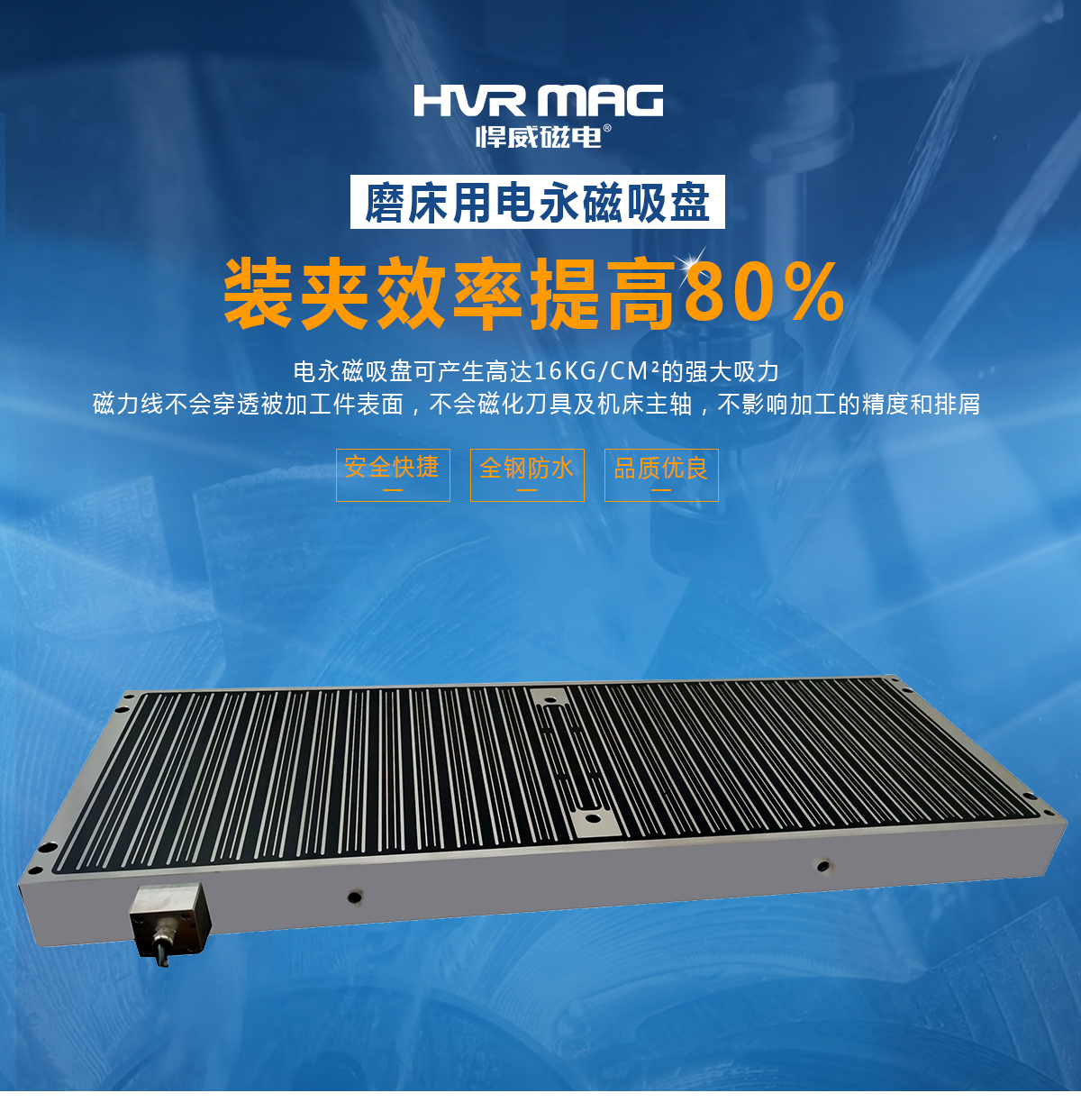 吸力大不隨時(shí)間延長(zhǎng)而衰減;磁力線均勻分布,吸力穩(wěn)定,退磁后無(wú)剩磁不影響加工精度和排屑。