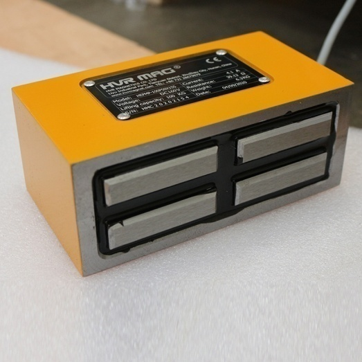 如圖中所示型號分別為悍威磁電HEPMSP-200P50S-JLH-A, HEPMSP-200P50S-JLH-B的電永磁吸盤抓手,用于配合抓放機(jī)器人自動(dòng)搬運(yùn)方管、圓管