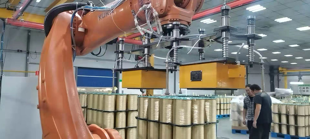 機(jī)械手電永磁鐵搬運(yùn)工字輪,產(chǎn)能翻了四倍!