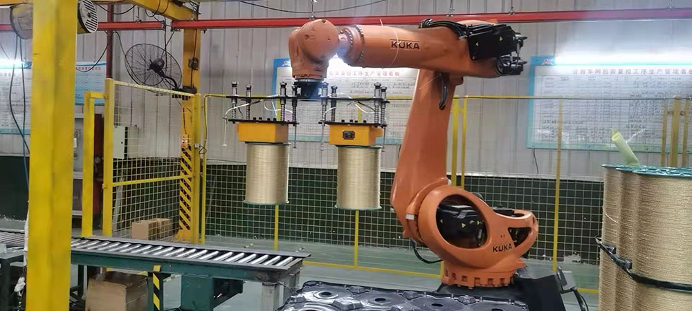這是一家專門生產(chǎn)汽車輪胎子午線的企業(yè),在生產(chǎn)過(guò)程中,以前采用KBK電動(dòng)葫蘆或者使用吊鉤進(jìn)行吊運(yùn)工字輪,一次吊運(yùn)下來(lái),不僅工人體力透支,而且生產(chǎn)效率嚴(yán)重滯后。為了解決這一難題,該公司在悍威磁電購(gòu)買了兩臺(tái)型號(hào)為HEPMP-2121P70S-GW的電永磁鐵,并將其運(yùn)用到機(jī)器人抓手上。