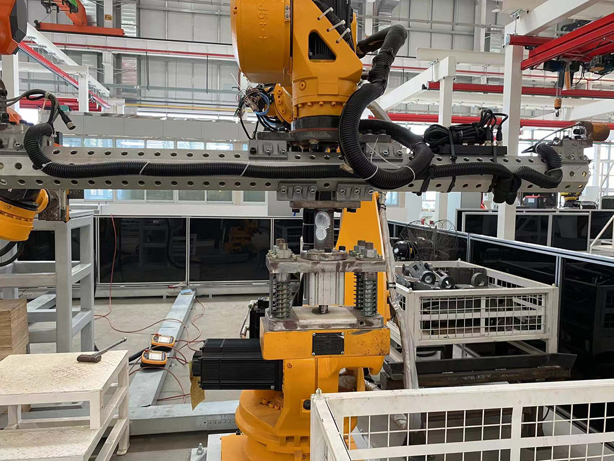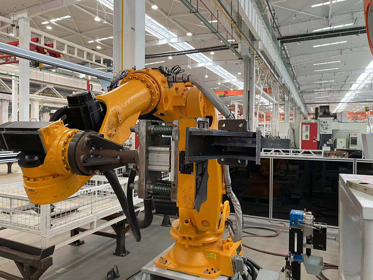 該車間以前采用液壓夾具搬運(yùn),布局比較麻煩,在焊接過程時(shí)要更換夾具工裝,時(shí)效性和工作效率均較差,故而升級(jí)了搬運(yùn)上料的裝備。